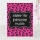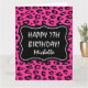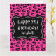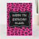 Grande carte d'empreinte de léopard rose extra-large pour les femmes, personnalisée avec le nom. Les animaux sauvages tache carte d'anniversaire motif avec nom personnalisé. Des souhaits personnalisables et la couleur arrière - plan. Idée sympa pour la fête du 16ème anniversaire du sweet sixteen par exemple. Carte de voeux XL géante avec couleur rose néon chaud.