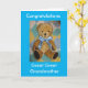 'Félicitations grand-mère sur la photo d'un mignon petit peluche avec un arc bleu.