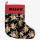 Fleurs d'hibiscus roses et blancs exotiques, lis jaunes, ananas, frondes de palmiers et feuillage tropical sur un arrière - plan noir sont imprimés et personnalisés de façon saisissante selon votre choix sur ces bas de Noël tropicaux en deux tailles. Choisissez parmi 3 styles de matériau différents. Nous avons conçu pour l'impression recto verso, mais vous pouvez choisir un panneau arrière rouge solide. (Le manteau rouge sur le dessus est IMPRIMÉ, pas une pièce séparée et vous pouvez changer la couleur.) **Personnalisez votre bas et ajoutez-le à votre panier pour chaque nom que vous créez.