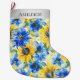 Grande Chaussette De Noël Fleurs Jaunes Bleues Argent Noël