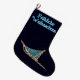 Un traîneau à chien avec un sac turquoise à traîneau superposé à un arrière - plan étoilé. Le texte allemand "Fröhliche Weihnachten" apparaît en bleu et blanc éclatant. Vous pouvez personnaliser le stockage en ajoutant un peu de texte sur le sac de traîneau.