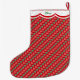 Voici un bas vraiment mignon qui est drôle, lumineux et coloré! Le devant est orné d'une image de dessin d'un renne à nez rouge avec des bois bruns et portant une écharpe d'hiver rayée verte. L'image est placée sur un joli arrière - plan motif de Noël rouge et vert. Une arête blanche bordée de rouge tient votre nom customisé en haut. Le dos du bas a le même arrière - plan motif, la bordure supérieure et le même nom, mais sans l'image de renne.