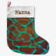 Grande Chaussette De Noël Giraffe Impression Brown et Turquoise