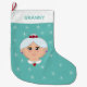 Grand-mère et flocons de neige sur le feu turquoise Noël Stocking. Granny text peut être personnalisé.