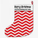 Joli bas de Noël avec un motif en chevron rouge et blanc à l'avant et à l'arrière. Dans une bande blanche en haut du bas est un modèle en texte noir sur le devant pour ajouter un nom et un modèle au dos pour ajouter votre message de Noël.
