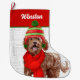 Grande Chaussette De Noël Noël Brown Labradoodle avec le nom du chien