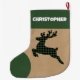 Grande Chaussette De Noël Rindeer Rustique Vert & Noir Plaid Nom personnalis
