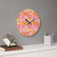 ピンク色が愛らしいレトロな黄色やオレンジ色のお花がたくさんの、素敵なラージ壁時計!プレゼントにも