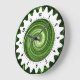 Une horloge avec une conception crantée attrayante et originale. 24 dents autour du bord avec une échelle d'heure et de minute avec des chiffres élégants clairs gentils autour du bord intérieur. Disponible dans une série de différentes couleurs. Cependant la couleur d'arrière - plan peut également être customisée.
