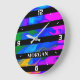 Grande Horloge Ronde Abstrait moderne tendance, Lignes noires, Nom blan