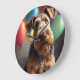 Grande Horloge Ronde Airedale chien avec gâteau et ballons