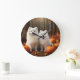 Grande Horloge Ronde American Eskimo Chiot Automne Citrouille délice