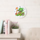 Animal safari wall clock with black numbers, a girafe, lion, jungle plants, and sun !