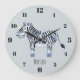 Grande Horloge Ronde Aquarelle bleue du garçon Zebra Safari Nom de la n