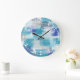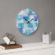 Grande Horloge Ronde Aquarelle moderne turquoise et gris Art Abstrait