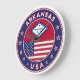 Badge de l'Arkansas avec drapeau de l'Arkansas et drapeau des Etats-Unis couleurs, forme arrondie. Emblème de l'Arkansas. Sceau de l'Arkansas. Collection USA Etats.