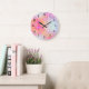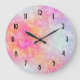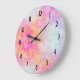 Grande Horloge Ronde Arrière - plan d'aquarelle Abstraite rose et orang