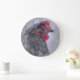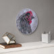 Le sujet de l'oeuvre créée dans le pastel doux et le crayon au charbon de bois qui embellit cette horloge murale est une poule Australorp noire. Cette race de poulet aux yeux brillants est originaire d'Australie.
