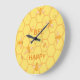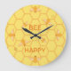 Grande Horloge Ronde Bee Happy honeybees on yellow honeycomb