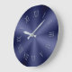 Grande Horloge Ronde Blue métallc Clock with Patterned Roman Numbers