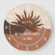 Un boho rustique moderne en terre cuite soleil monogrammed mariage de jeunes mariés horloge murale avec date établie.