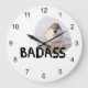Photo d'un petit, mais plutôt agressif, vous regardant moineau et un texte Badass. C'est vraiment un fauteur de troubles. Horloge murale amusante.