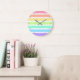 Grande Horloge Ronde Bubblegum arc-en-ciel et bandes blanches