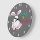 à l'original watercolor painting by Anne Ormsby of a bunny with the slogan, "Make it Hoppen" adorns this fun wall clock.