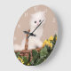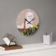 Un chaton perse blanc dans un panier en osier avec des fleurs entourant la surveillance de son horloge murale amoureux des chats du monde. L'Arrière - plan est beige, les numéros peuvent être supprimés