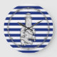 Grande Horloge Ronde Chromes Style Lighthouse on Blue Nautical Stripes