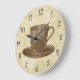 Horloges murales de cuisine aux couleurs brune et crème et image d'un café frais dans une tasse de café design victorienne sur le visage de l'horloge dans cette décoration murale maison design horloge pour votre cuisine, salle de bain, ou toute chambre dans votre maison vous voulez ajouter de la nourriture et de la décoration liée à la boisson.