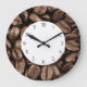Kitchen wall clocks with brown and cream colors and image of fresh coffee beans all over the clock face in this household wall decor clock design for your kitchen, bathroom, or any room in your house you want to add some theme home décor..