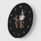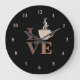 This is the perfect clock for hanging in your home, office or school. Made especially for coffee lovers, this design objets a background with "Love" typographiy writes in beige and a hot cup of coffee integrated into the design. La coupe des coffee has steam rising from it. Add your own text, photos to the design.
