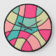 Un cercle à contour noir divisé par des lignes noires en différentes zones de couleur créant un motif abstrait à bord circulaire original et élégant.