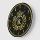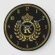 Cette horloge tape-à-l'oeil convient à un roi et une reine. Le design d'inspiration pourcentage comprend un motif de couronne et de laurier en or sur le noir avec des numéros d'horloge Art Déco élégants et de la place pour votre lettre monogramme. Cette élégante horloge murale ronde est tout simplement sophistiquée et fera de votre maison un palais. Utilisez le modèle facile pour ajouter votre lettre monogramme au centre.