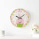 Une adorable horloge en cupcake rose et vert, parfaite pour une chambre de fille. Art original par Rebecca de la ménagerie de Night Owl, 2012.