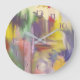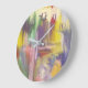Need more time ? This is the clock for you. Numbers are arranged counter-clockwise for people who are forever short on time - or for those who simply would like to turn the clock back to earlier time. Soft delicate design in muted colors. Available in 2 different sizes.