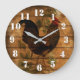 Grande Horloge Ronde Elégant coq de pays sur bois rustique