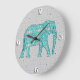 Grande Horloge Ronde Eléphant fleur Mandala - turquoise, gris & blanc