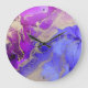 Grande Horloge Ronde Encre violette Abstraite d'or céleste