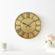 Grande Horloge Ronde Faux Gold Foil Noir chiffres romains