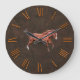 Grande Horloge Ronde Faux Tooled, Cuir sculpté avec Cheval Rouge Dun