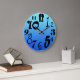 For a fun look if you loblue, this is a stylish clock with funky numbers, in different sizes and syles, on a shaded gradient electric blue clock face.