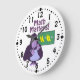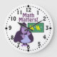 This custom wall clock has a funny purple cartoon gorilla trying to figure out a math Problm about bananias. Le compte d'It's counting on its fingers and looking rather confused.