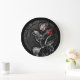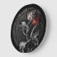 This clock has a vintage botanical illustration of tulip flowers, recolored in a gothic black and red color scheme.