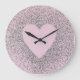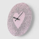 Grande Horloge Ronde Grey Glitter Canvas Art with Pink Heart