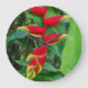 Heliconia wall clock. This tropical bloom is famous for its vivid red and green and yellow colors.