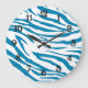 Grande Horloge Ronde Impression Aqua Blue Zebra