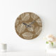 Grande Horloge Ronde Impression mono feuille, brun caramel, sans soudur