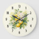 A clock with a lovely illustration of a bouquet of lemons surrounded by white blossoms leaves and sprigs.